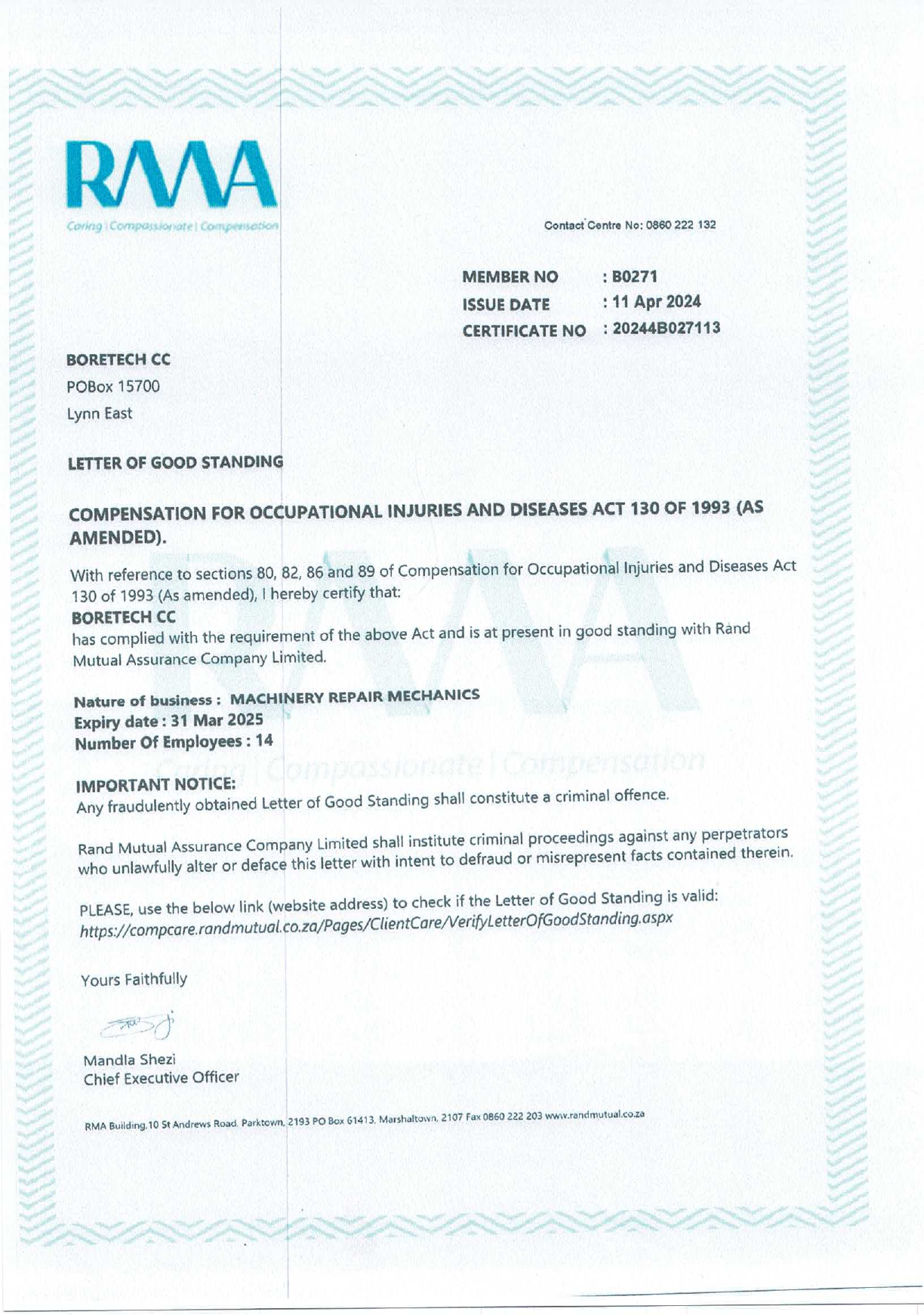 At BORETECH, we strive to be a winning company and having defined our goals and objectives, we will pursue their attainment with a single-minded focus