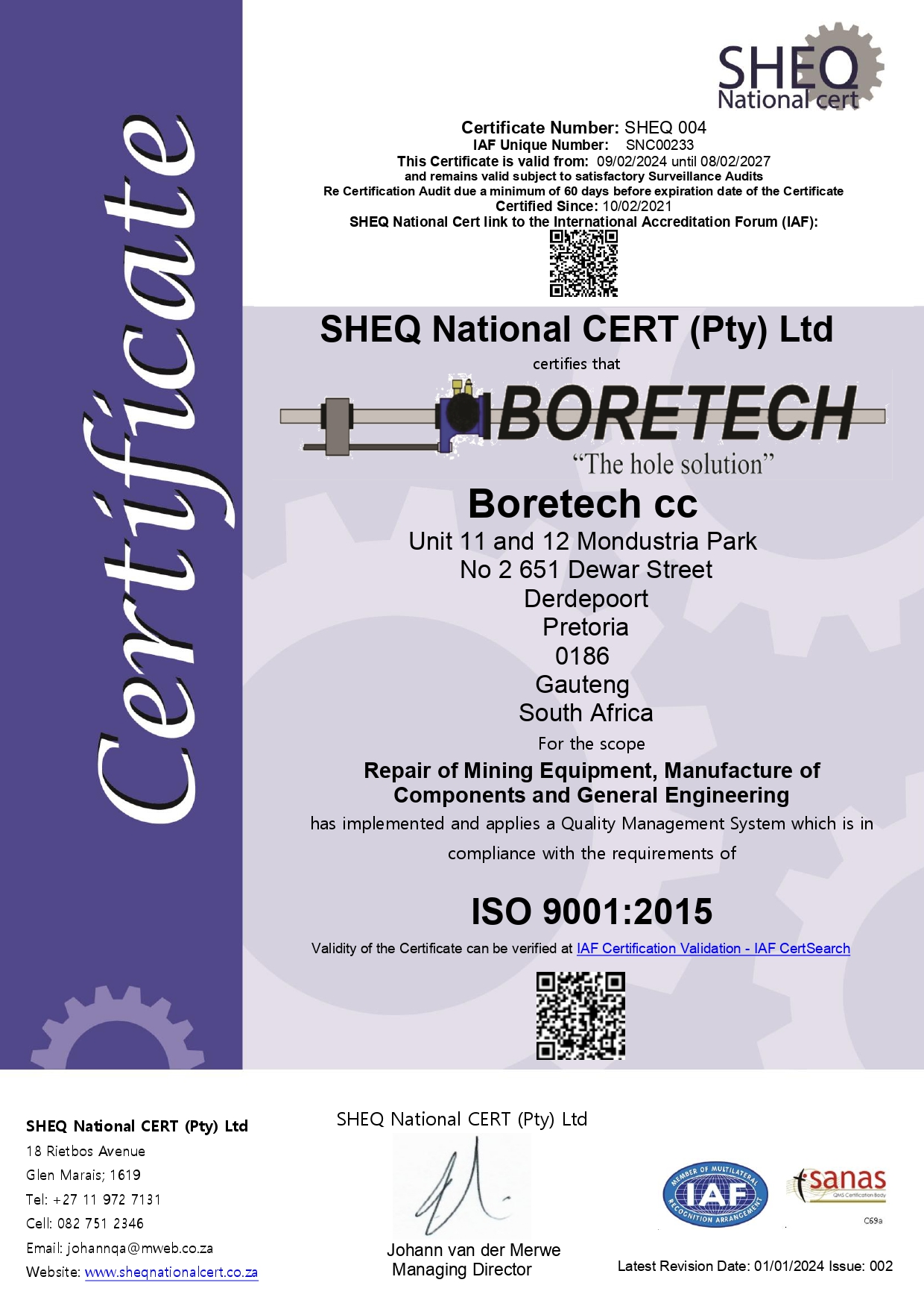 Our repair facility is supported by a CNC equipped machine shop where machining, manufacturing and fabrication takes place. The workshop and work is fully certified by the standards set by the ISO9001 certification proses. Boretech also do conventional machining.